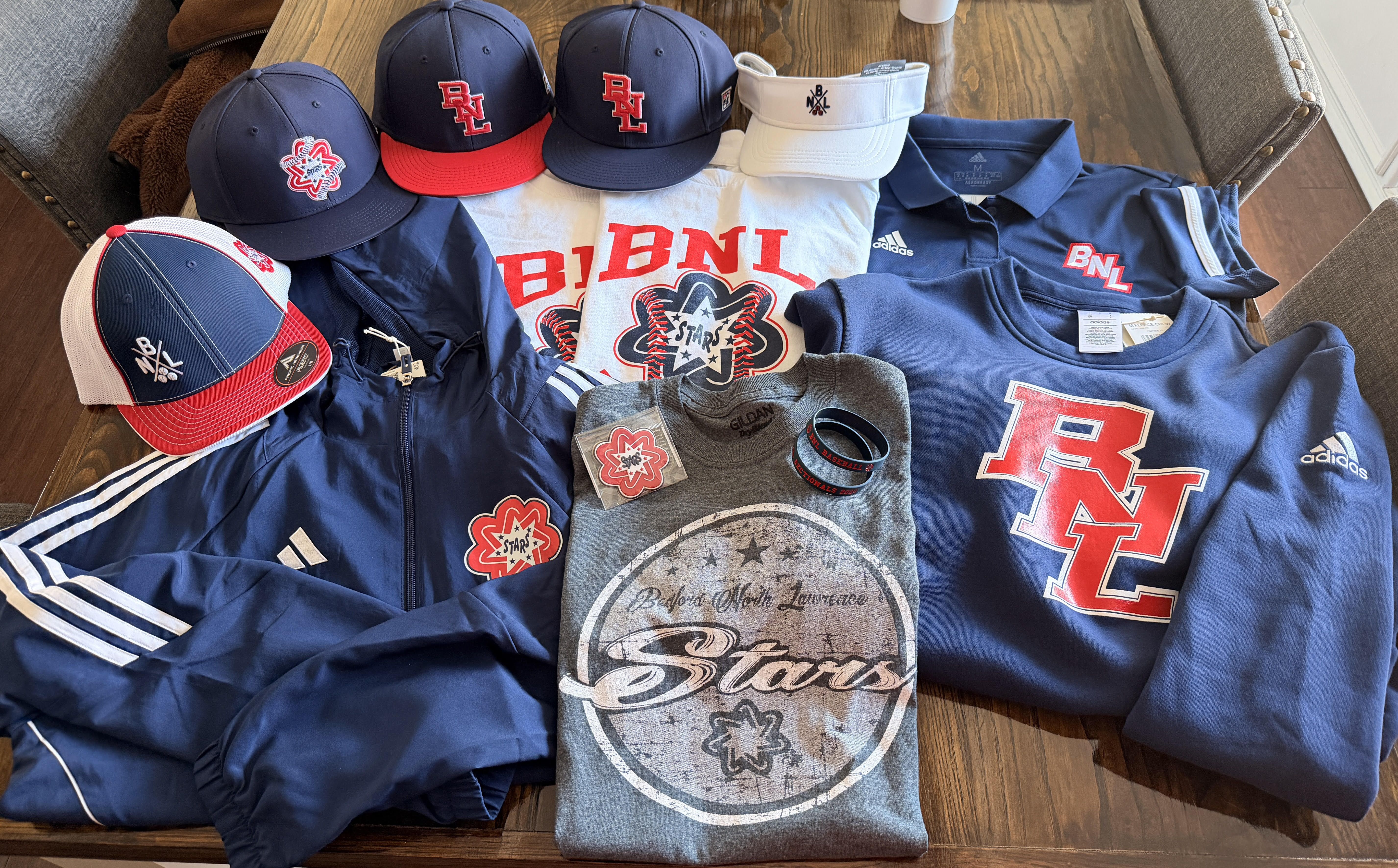 🧥 Adidas BNL Jacket & Pullover (Med) – Premium embroidered Adidas gear perfect for cool spring baseball nights.