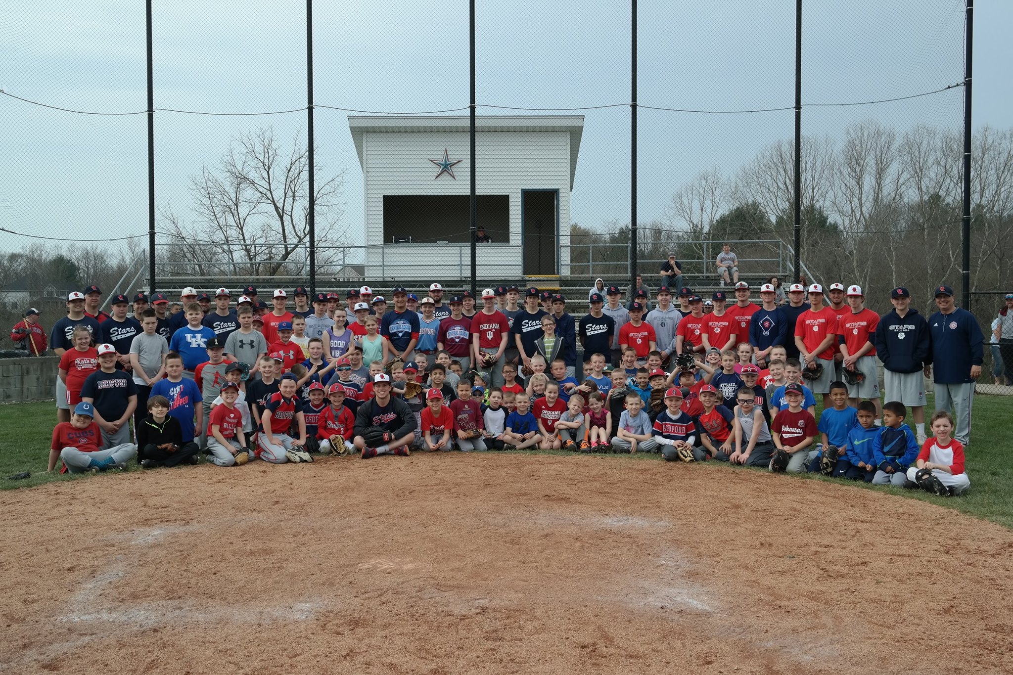 Mother Nature cooperated for the first time in the last four years allowing the BNL Baseball Stars to host the annual free youth clinic outside on Stars Field. Over 80 youth baseball players attended the clinic. The current BNL Star players put the campers through drills including: hitting, infield play, outfield play, pitching, catching, and base running. Each attendee walked away with a door prize which included: autographed baseballs, baseball cards, batting gloves, t-shirts, hats, “Game-Day Experience” certificate, and free summer camp registrations. The RBI Club fed the campers and players lunch after the event. Several of them stayed around to watch the Red and Blue scrimmage. During the clinic, the parents of the BNL players were busy cleaning, raking, hanging signs, and completing other field improvements. Thanks to everyone that made this a great day for BNL Stars Baseball.