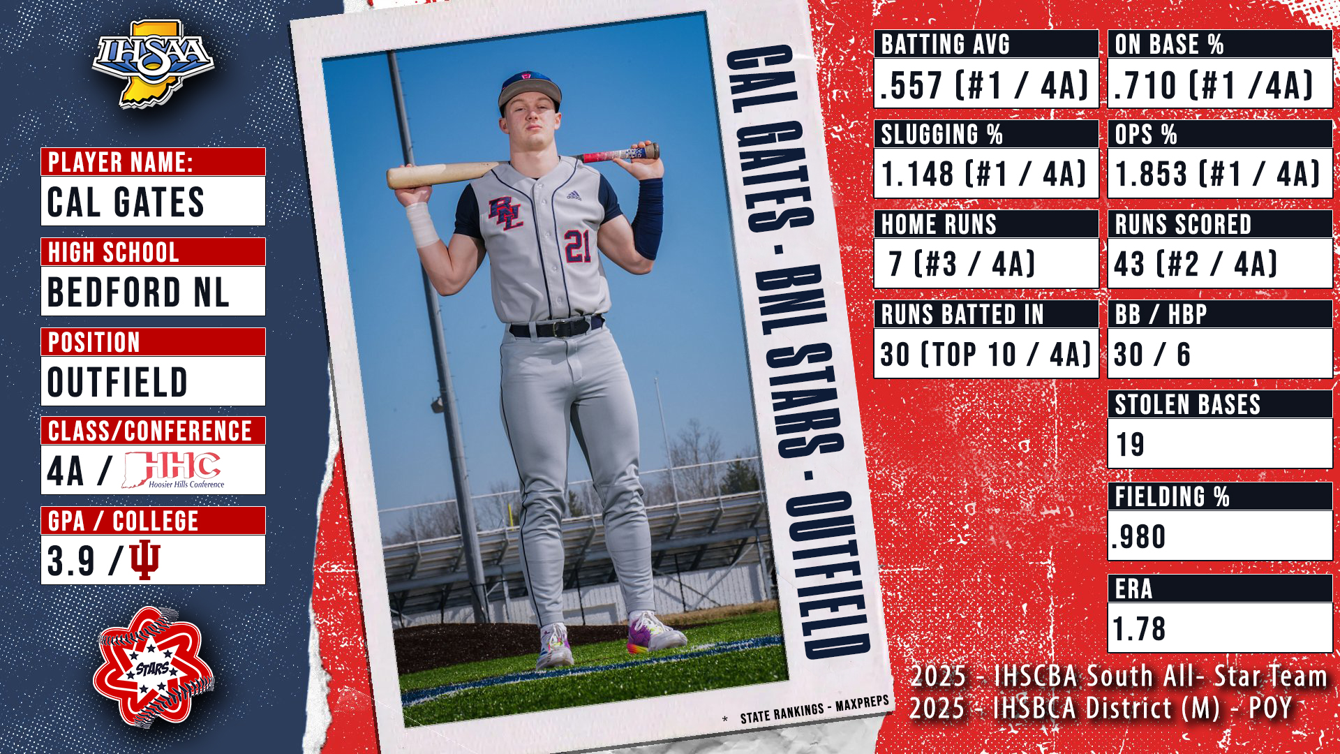 His lifelong dedication and passion for the sport has been rewarded. Gates, Bedford North Lawrence’s superstar senior, was selected for the South All-Stars by the Indiana High School Baseball Coaches Association for the 50th anniversary of the North-South All-Star games in June.